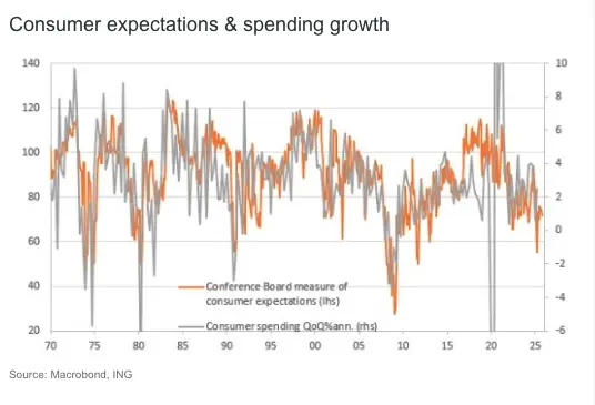 It's likely that lingering anxiety about the potential for tariff-induced price hikes and a cooling of the jobs market are the main drivers of this softer outcome.