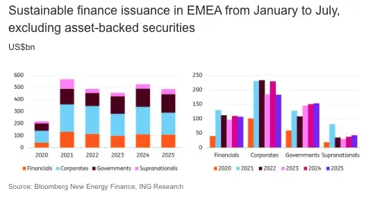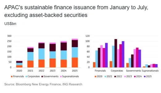 We feel global-level supply levels are healthy, particularly given the turbulent and uncertain year for sustainable finance. But it is important to note that issuance and market sentiment are highly divided across different regions. APAC is on track to see a record-breaking year. EMEA remains committed to sustainable finance but is expected to see stagnated growth as the EU shifts its focus toward competitiveness. The US’ retreat from sustainability policy support is leading to subdued sentiment, with the rest of the Americas experiencing challenges too.