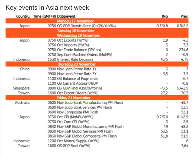 No key data is expected to be released next week. The loan prime rates will be announced on Thursday; no change is expected. The PBOC may choose to conserve ammunition for next year, after the CPI inflation returned to positive territory in October -- and as the urgency for new stimulus diminished somewhat over the past month.