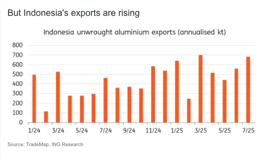 With China reaching its capacity cap, Indonesian supply growth is now in focus, with annualised exports from the country up 40% year-to-date as projects in the region ramp up. For now, we think the aluminium market can absorb the growing Indonesian supply, although sustained expansion could test global balance later in 2026