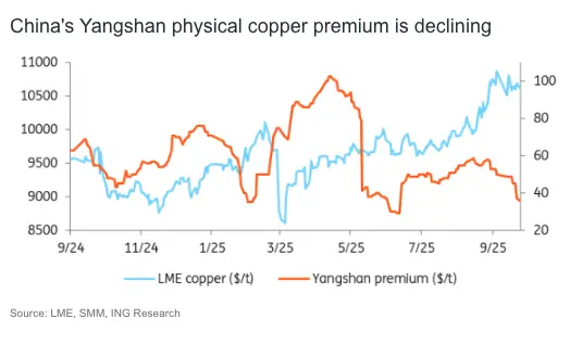 For now, China is showing some signs of price sensitivity, with mainland smelters planning to step up shipments abroad, Bloomberg recently reported, as higher prices deter domestic buyers. The Yangshan premium, paid by traders for imported metal and a key indicator of physical demand in China, has slumped more than 20% since late September.