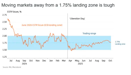 Whilst we do see some movement at the front end of the euro curve, we expect the current pricing to remain relatively sticky until at least mid-2026. Markets imply a probability of around 70% for another cut by summer next year, which seems fair given the balance of risks. The biggest downside risk would be headwinds to the growth outlook, but so far the economy has shown resilience even despite the trade turmoil earlier this year. Bar a big surprise, the PMIs on Friday should confirm a continuation of a slow but gradual recovery in growth.