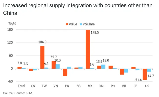 We also found that shipments to Taiwan, Malaysia, and India increased significantly. The rise in exports to Taiwan mainly reflects high-end high-bandwidth memory (HBM) chip shipments. The global demand for AI chips has increased over the last couple of years. However, this year, there may be some front-loading to avoid potential sectoral tariffs.