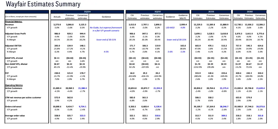 In our view, this continues to be the case as it can better navigate tariffs/macro due to the nature of its marketplace, and be more price competitive. But Wayfair is also seeing structural improvements like more adoption (and new channels) for Castlegate, stronger growth in its higher- market brands and B2B, and physical retail.