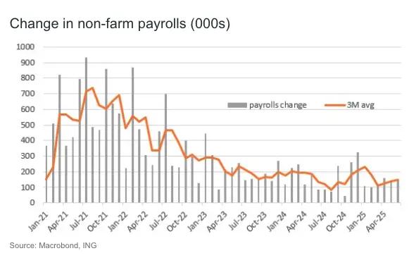 The June US jobs report shows nonfarm payrolls rising 147,000 versus the 106,000 consensus with 16,000 of upward revisions to the past two months of data. Meanwhile, the unemployment rate surprisingly fell to 4.1% from 4.2% while the market was solidly backing the view that unemployment would actually tick higher to 4.3%. President Trump has been calling for the Federal Reserve to cut the policy rate 200-300bp immediately and two of his appointees (Chris Waller and Michelle Bowman) had suggested that they could vote for a rate cut as soon as this month's FOMC meeting. But the rest of the FOMC is far more cautious and today’s data indicates there will be no rate cut before the September FOMC meeting, especially with tariffs set to push inflation higher over the next few months.