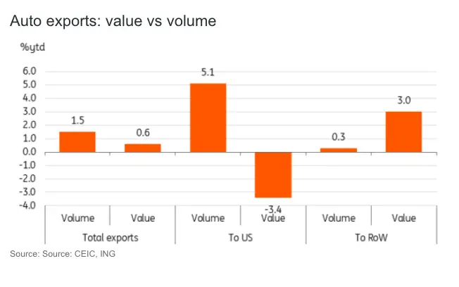 With the 15% tariff deal, we believe that car exports are likely to stabilise in 2H25. But it’s still uncertain whether they will continue to sacrifice profits or pass rising costs onto consumers.