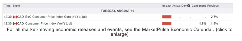 Tuesday will bring Canadian inflation data which is cooler but not quite where the Bank of Canada would like it to be.