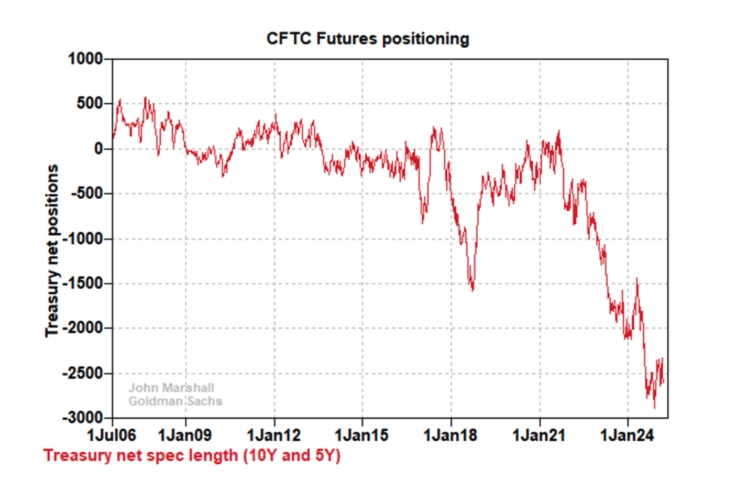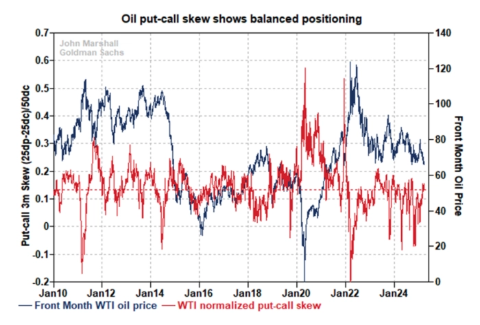 Investors are not disproportionately positioned for asymmetric upside or downside.