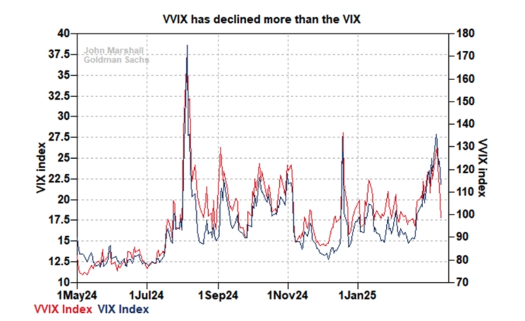Investors expect the VIX to be less volatile over the next month at its recently elevated level. Investors think “elevated volatility is here to stay”.