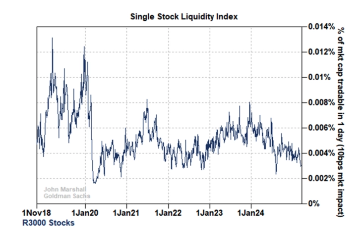 This suggests single stock volatility has risen at a faster pace than single stock volumes, leading bid-ask spreads to be wider on large trades. Our cross- sectional studies of liquidity suggests that those stocks with low liquidity also tend to see higher subsequent volatility.
