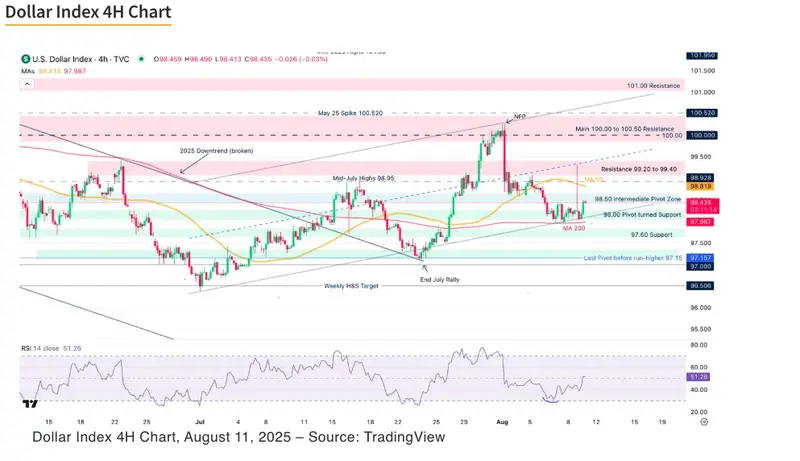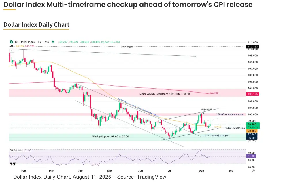Traders now turn their attention to a pivotal stretch for inflation figures, with CPI due Tuesday (consensus: +0.2% m/m, +2.8% y/y) and PPI on Thursday (consensus: +0.3% m/m, +2.5% y/y) and expectations are for high volatility: Markets and central banks all want to know more on the US Economy as the infamous Trump tariffs are finally in place.