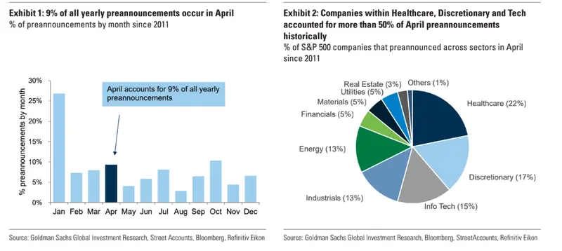 Our analysis of 8,000+ preannouncements since 2011 reveals ~9% of all preannouncements have occurred in the month of April, with sector biases toward Healthcare, Discretionary and TMT names. Given the mostly unplanned nature of these events, we believe investors underestimate their associated volatility, and that could present option buying opportunities. In today’s note, we identify 25 stocks that have (1) preannounced at least twice in the month of April since 2011 and (2) at least once in the past 2 years.