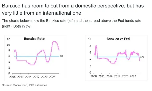 So, if Banxico were to, for example, cut by another 50bp and the Fed were to remain on hold, that spread would be practically back to its historical tights