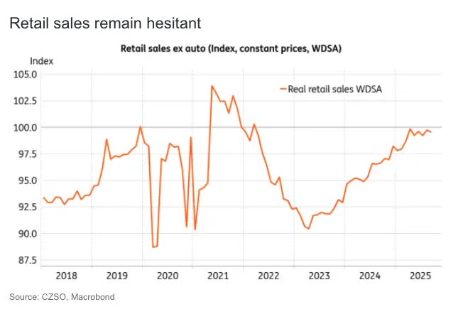Czech real retail sales rose 2.6% year-on-year in September yet fell 0.2% from the preceding month. The reading was well below what market analysts had expected. That said, the main drags on the overall annual performance were falling sales in stores selling computer and communication equipment, as well as clothing and footwear, and somewhat weak sales in specialised food stores.