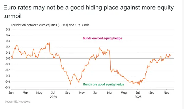 Euro rates are more focused on the improving macro story than on AI-driven equity jitters. This also means that Bunds may not prove an effective hedge against an equity sell-off