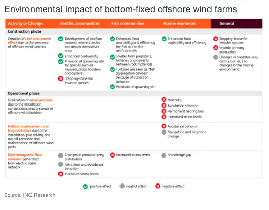 Offshore wind farms can also create new habitats. Reefs formed around turbine monopiles can support fish and benthic communities, right on the ocean floor, especially when fishing is restricted in their vicinity, creating a 'nature reserve effect.'