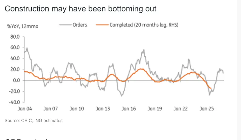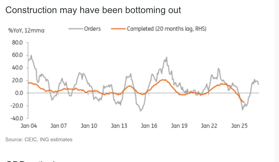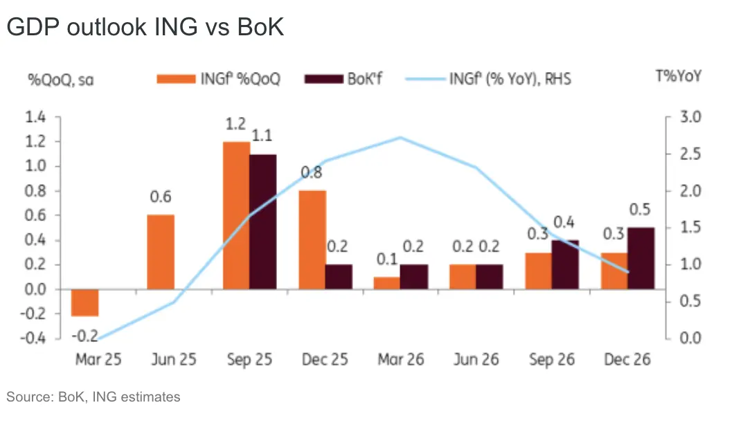 Thus, we expect 3Q25 GDP to grow 1.2% quarter-over-quarter and 0.8% in 4Q25. Compared to the Bank of Korea’s growth outlook, we see a higher growth in 4Q25. That’s because we expect construction activity to slowly stabilise and for private consumption and services to recover strongly in the fourth quarter, even if the fiscal boost dissipates.