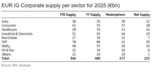 EUR corporate supply forecast: €400bn in 2025