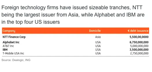 NTT, Alphabet and IBM have raised large amounts in euro debt markets