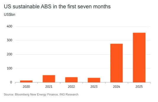 Looking ahead, the weakness we have seen in the US sustainable finance market (excluding sustainable ABS and supranationals) can continue this year and (and likely through the rest of the Trump administration). Nevertheless, a few silver linings do exist to give sustainable finance in the US a lifeline. First, rapidly expanding AI-driven data centres will be incentivised to pursue green and energy efficiency projects to improve their operations. Second, the renewable energy sector will continue to tap into sustainable debt markets. Although the One Big Beautiful Bill Act has shortened the eligibility window for solar and wind projects to qualify for tax credits, we see the industry’s rush to meet the start of construction and supply chain deadlines as a positive catalyst for the US sustainable finance market over the next 1–2 years.