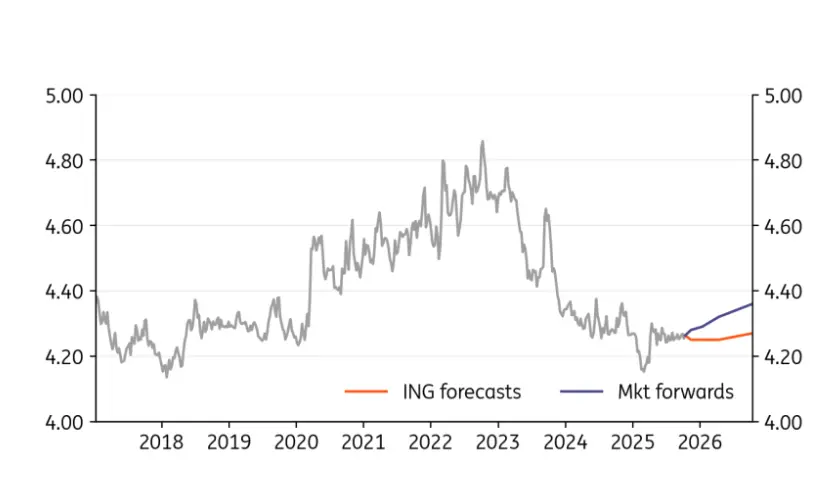 - We maintain a neutral outlook for the zloty. A positive carry trade remains the main argument for the zloty’s resistance, along with a cautious approach by the Monetary Policy Council and GDP growth outlook clearly outperforming the CEE region.