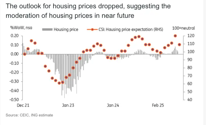 The most significant finding in the report was a notable decline in the housing price outlook, which dropped by 11 points in July after four consecutive months of rapid gains. We believe this serves as a powerful forward-looking indicator for assessing actual housing prices. It suggests that recent stringent mortgage regulations have been effective in moderating the rise in housing prices