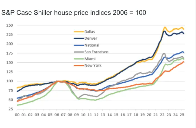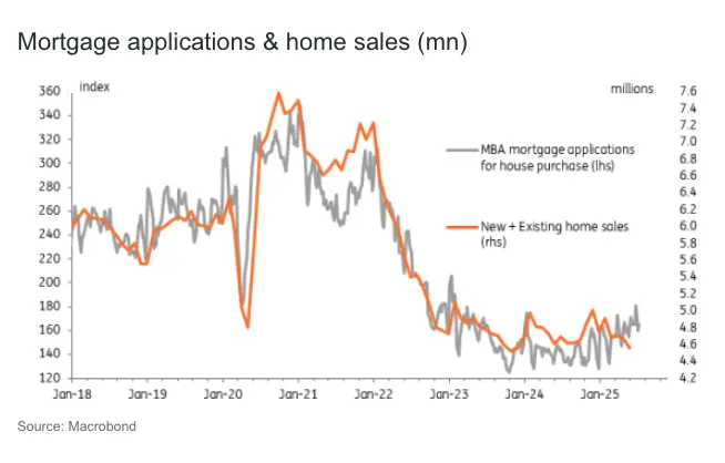 This could have worrying implications for already weak consumer confidence, given that the home is the biggest store of wealth for most families. It also means Fed Chair Powell will remain under intense pressure from President Trump to cut interest rates in order to potentially push borrowing costs lower to reignite demand. But with mortgage rates driven by the long end of the curve, uncertainty over inflation and concerns about fiscal sustainability mean that short-end rate cuts may have very limited impact on homebuyer borrowing costs.