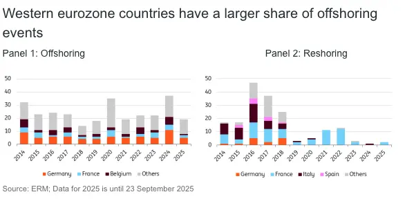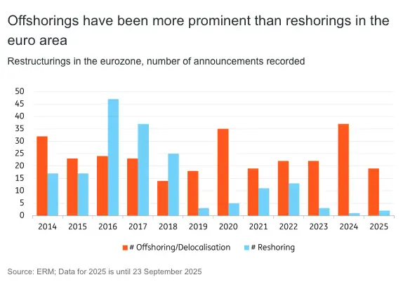Reshorings make up a negligible share of company restructurings in the eurozone