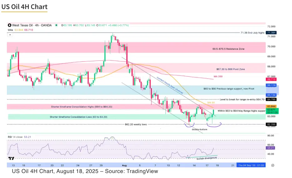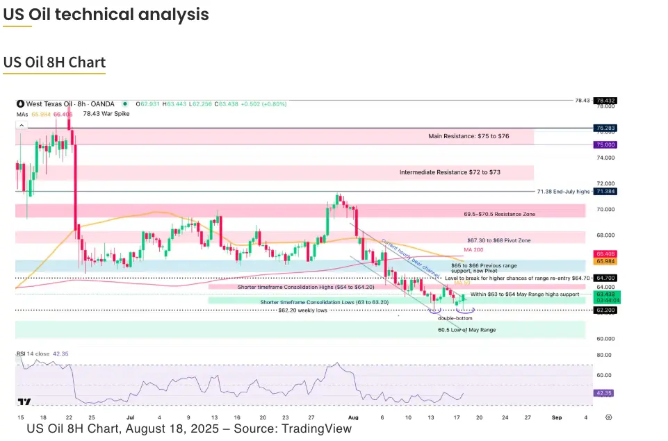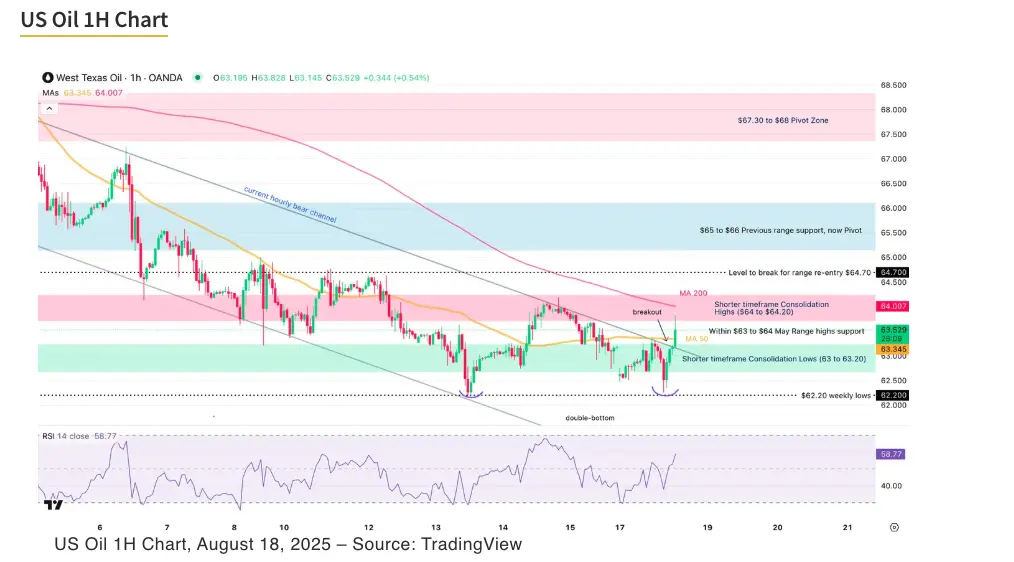 Prices are trying to push within the $64 resistance zone, acting as immediate pivot.