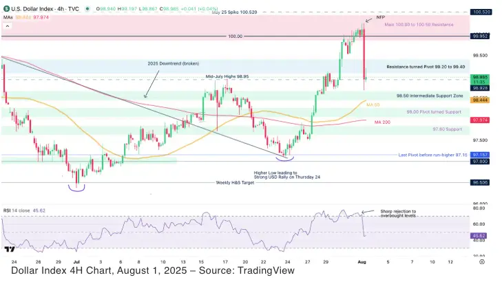 The Dollar Index, which touched 97.20 last Wednesday, ripped through the 100 handle, peaking near 100.20 by Friday morning. That strength started to shake broader markets, especially in FX, commodities, and rate-sensitive sectors.